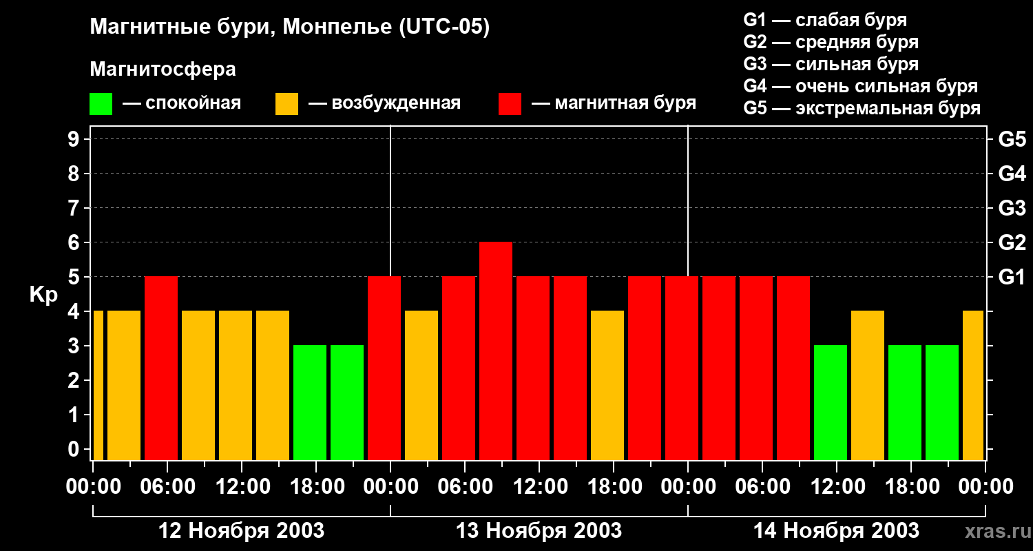 Магнитные бури в Монпелье — 14 ноября 2003 года