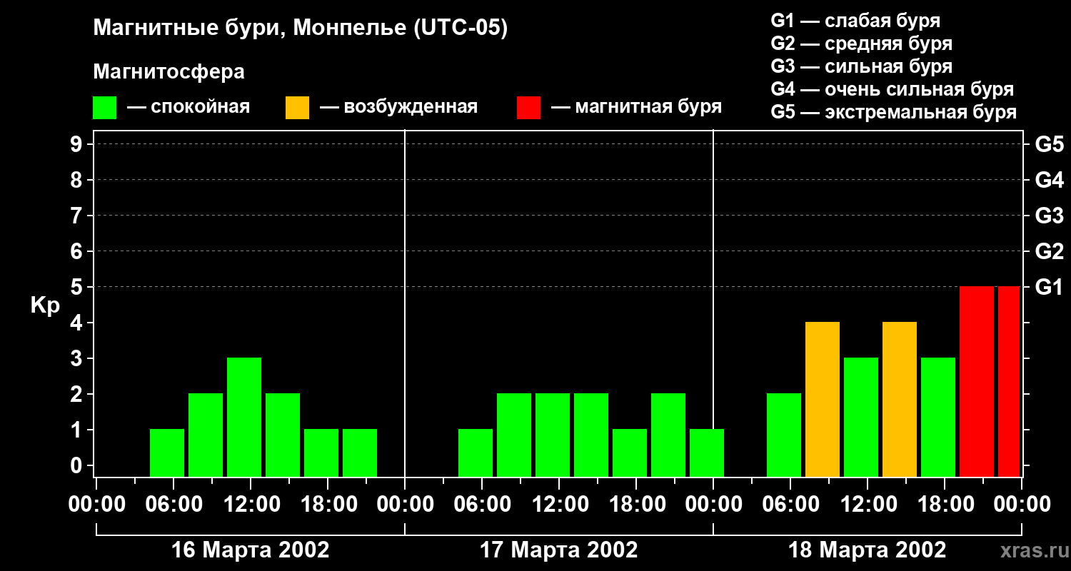 Магнитные бури в Монпелье — 18 марта 2002 года