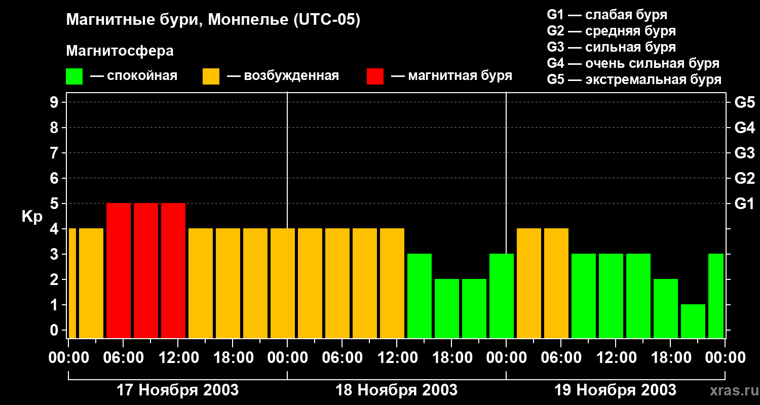 Магнитные бури в Монпелье — 19 ноября 2003 года