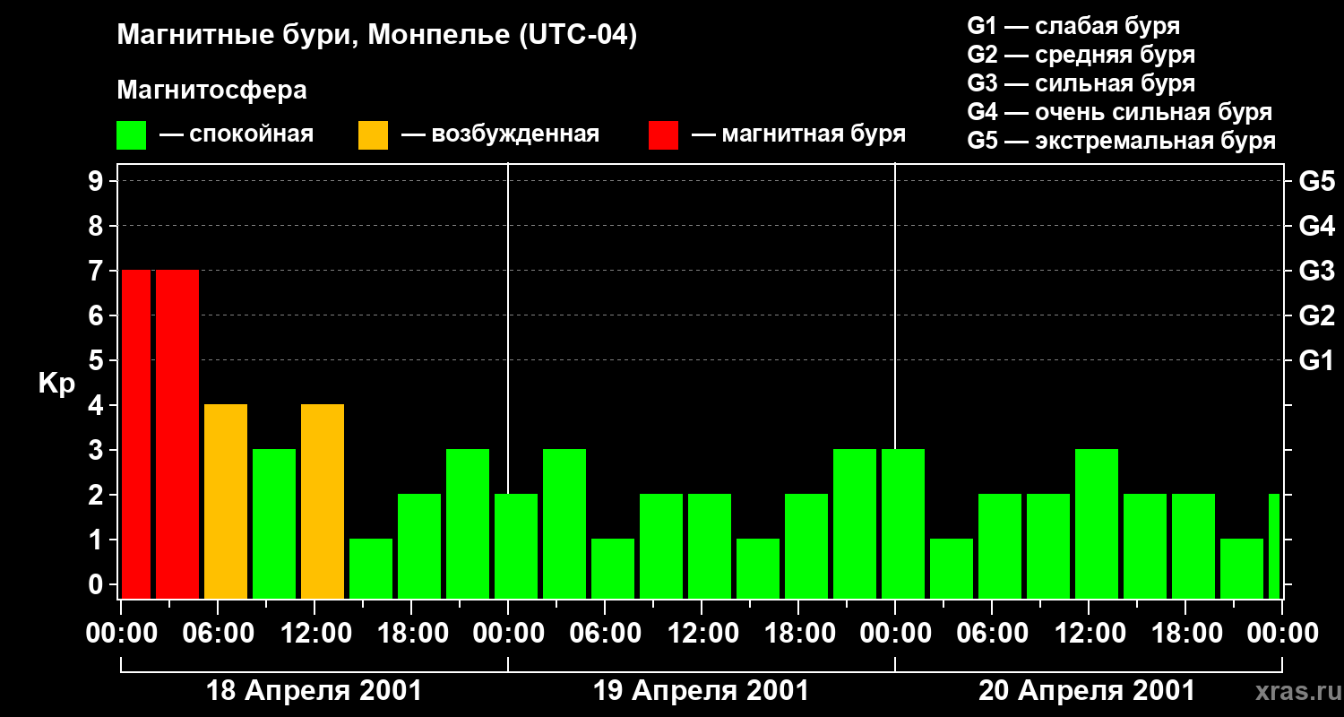 Магнитные бури в Монпелье — 20 апреля 2001 года