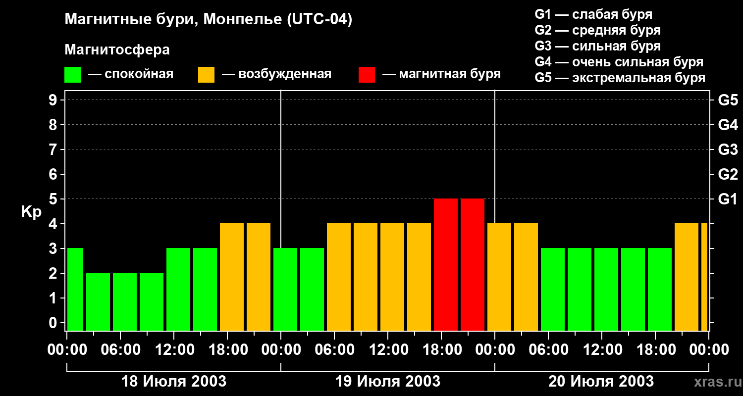 Магнитные бури в Монпелье — 20 июля 2003 года