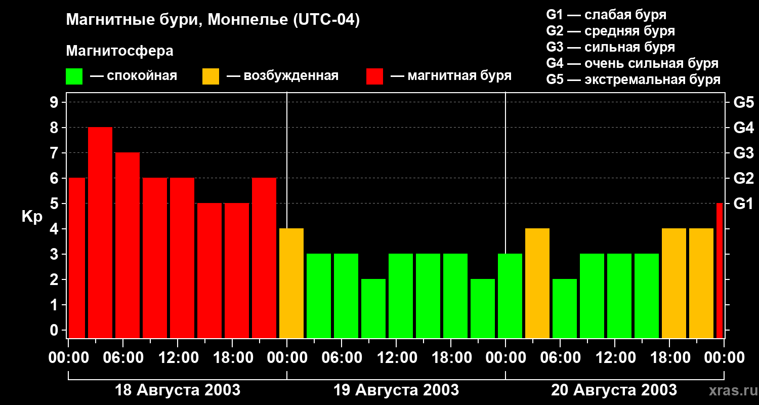 Магнитные бури в Монпелье — 20 августа 2003 года