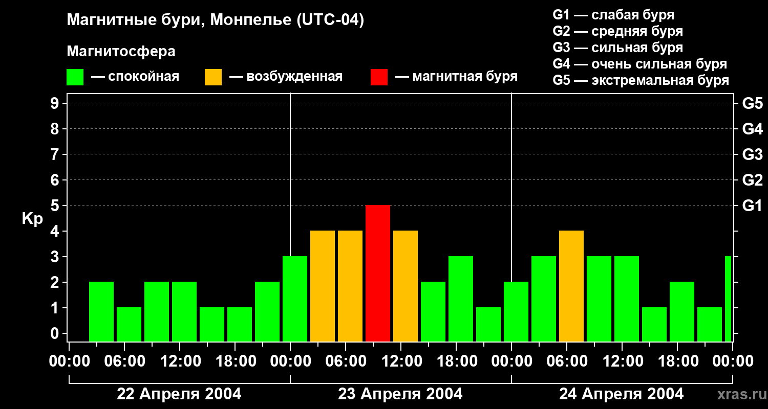 Магнитные бури в Монпелье — 24 апреля 2004 года