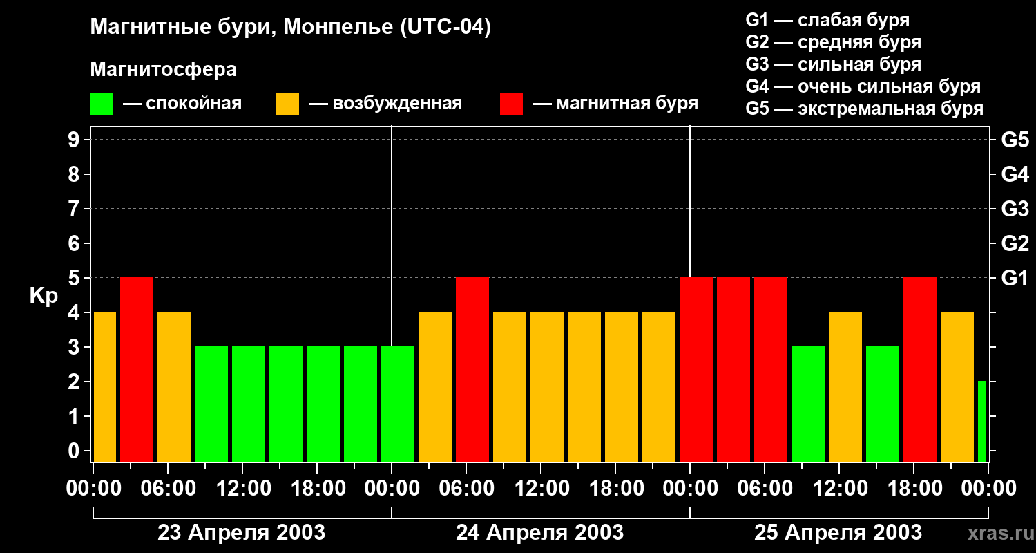 Магнитные бури в Монпелье — 25 апреля 2003 года