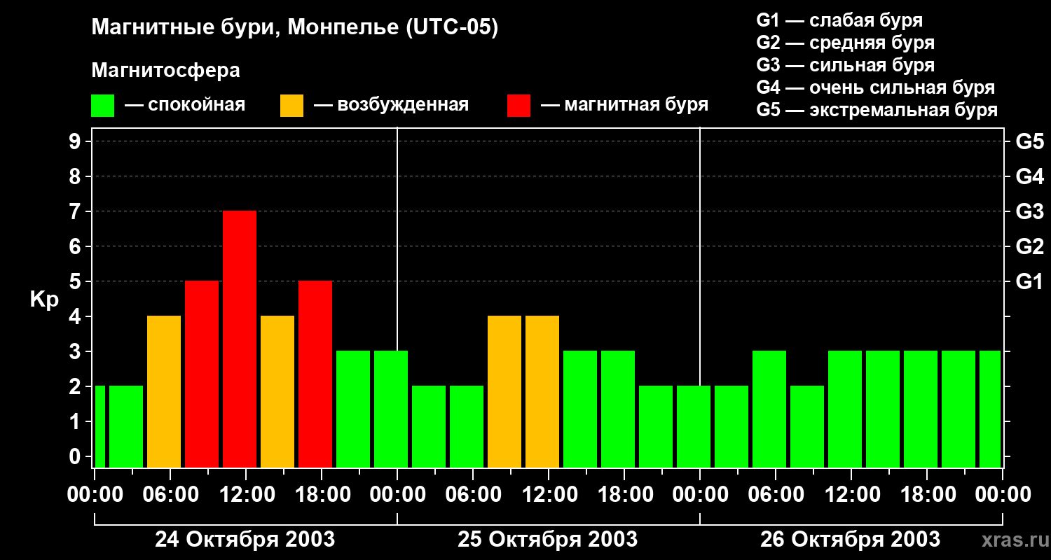 Магнитные бури в Монпелье — 26 октября 2003 года
