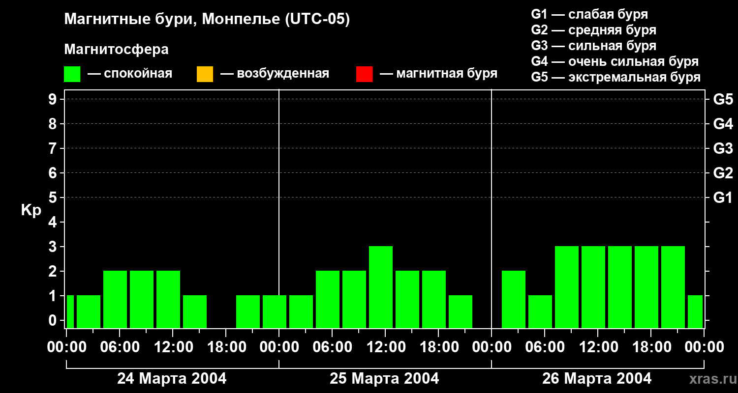 Магнитные бури в Монпелье — 26 марта 2004 года