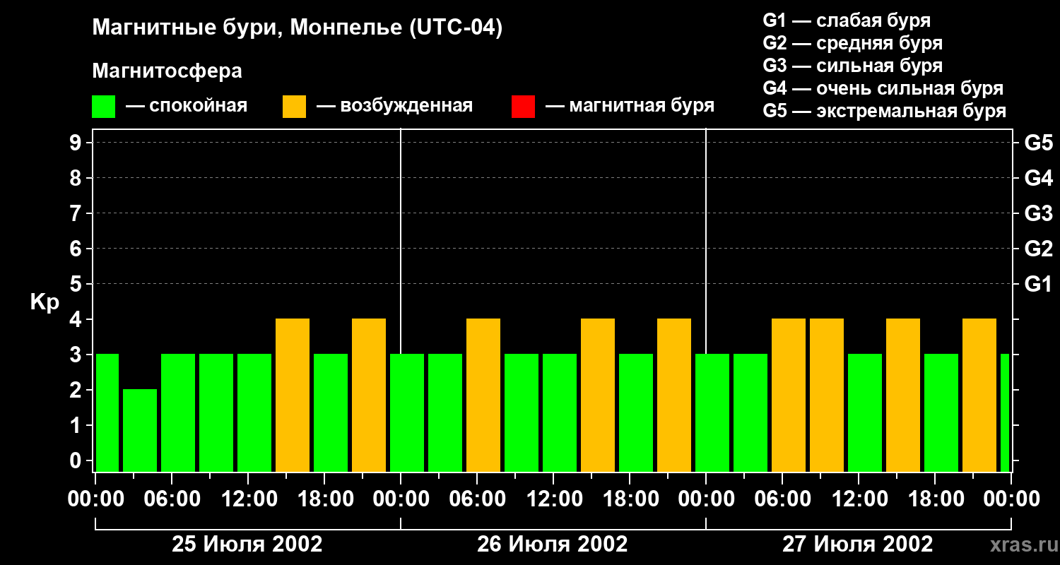 Магнитные бури в Монпелье — 27 июля 2002 года