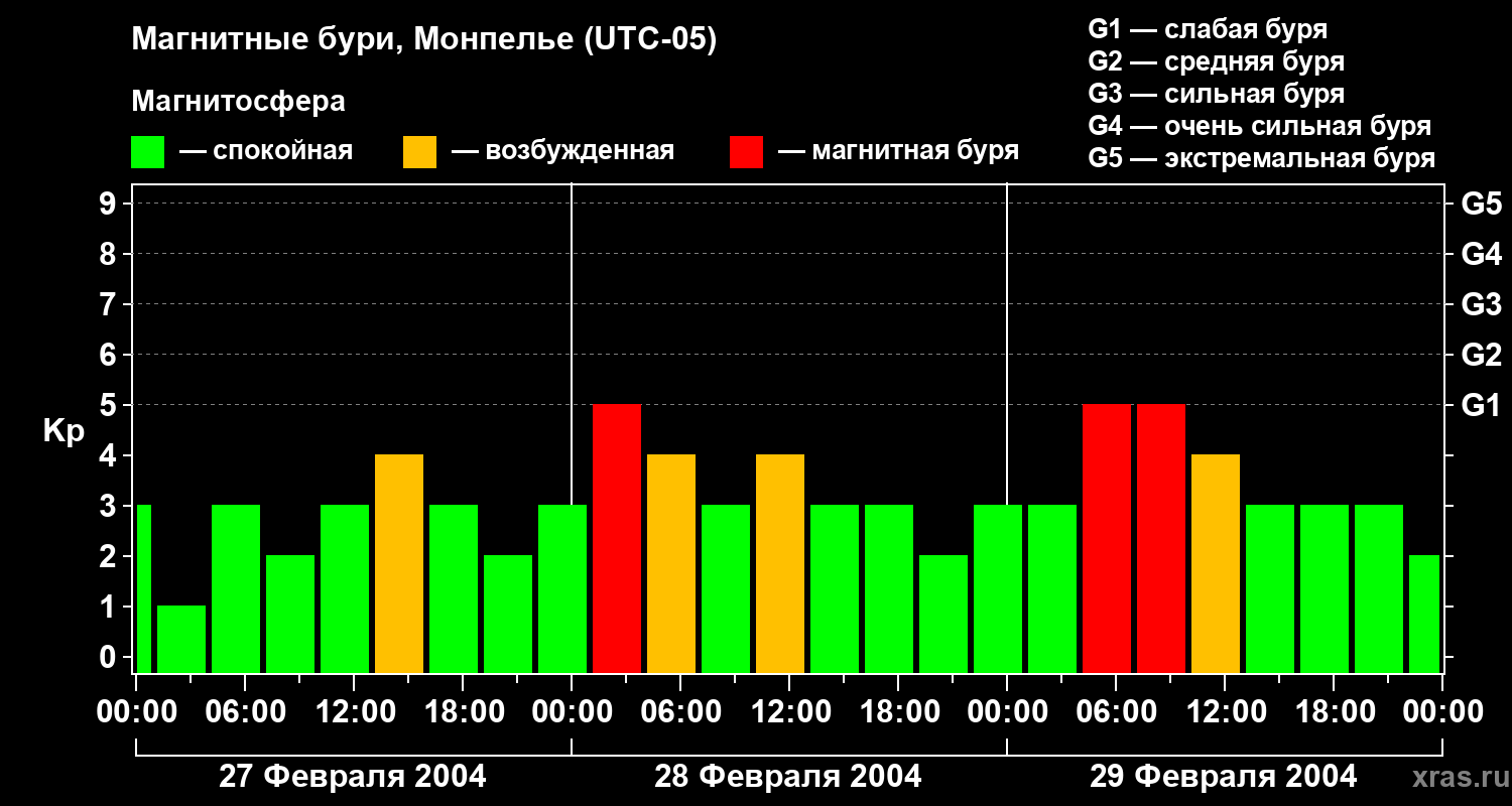 Магнитные бури в Монпелье — 29 февраля 2004 года
