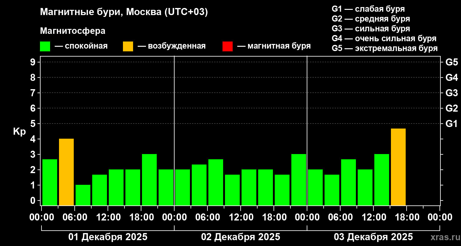 Магнитные бури в Москве 3 декабря 2025 года