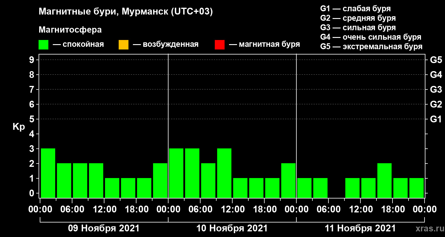Магнитные бури в Мурманске 11 ноября 2021 года