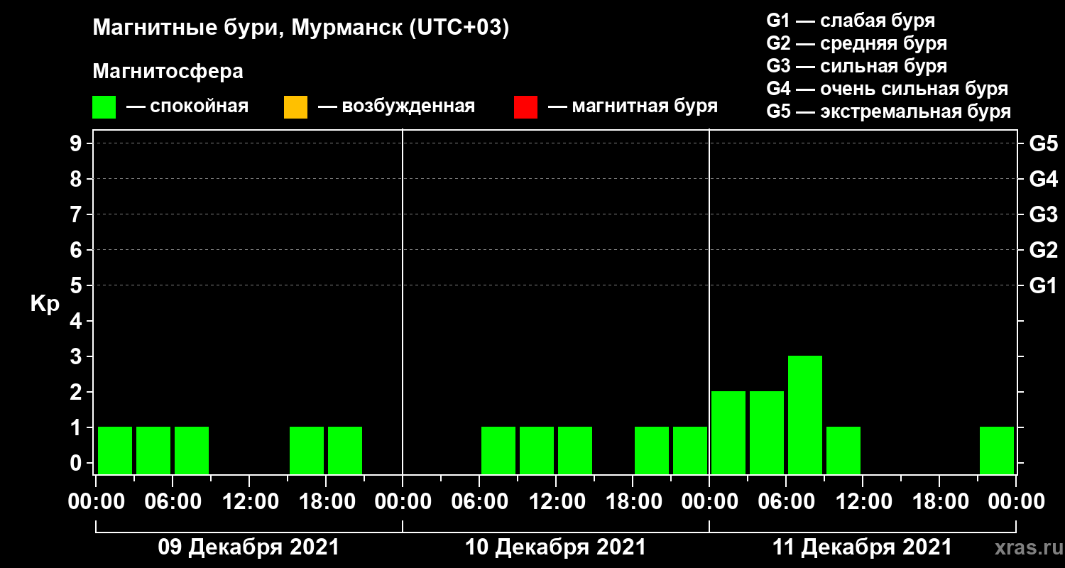 Магнитные бури в Мурманске 11 декабря 2021 года