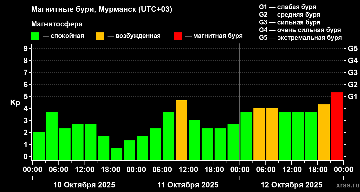 Магнитные бури в Мурманске — 12 октября 2025 года