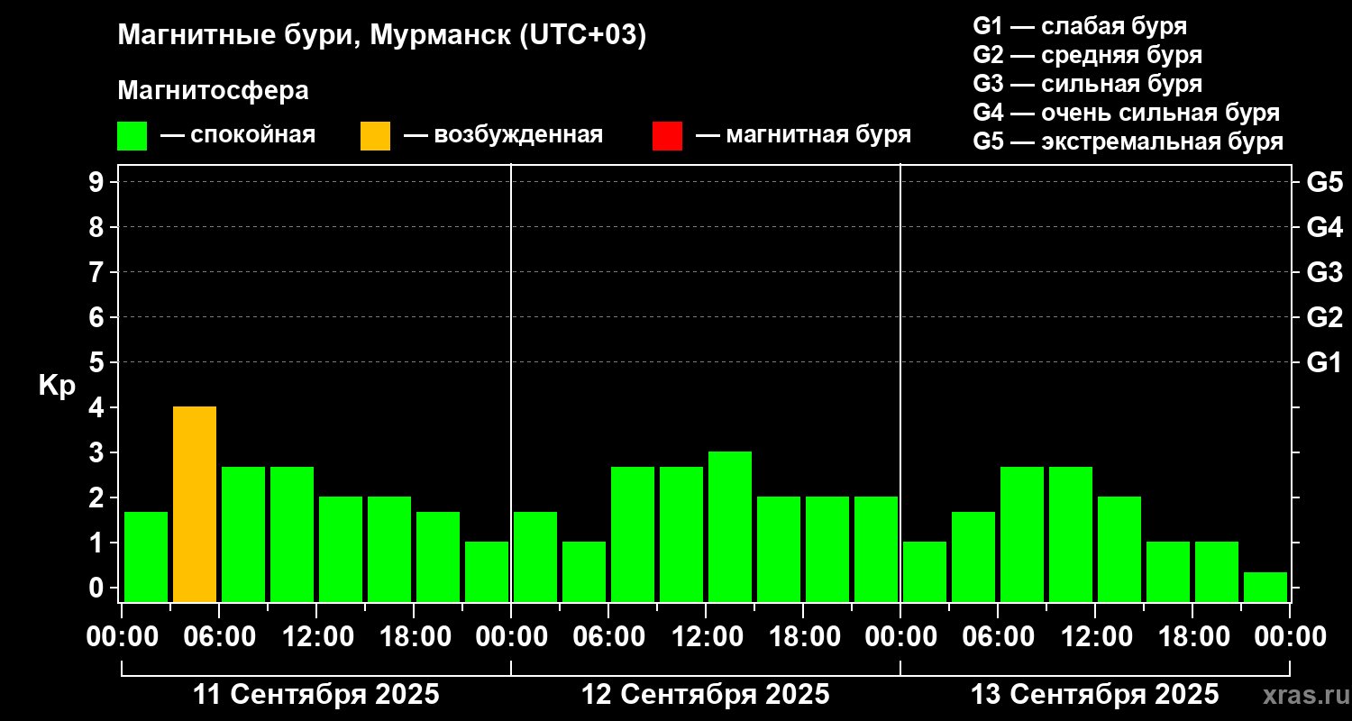 Магнитные бури в Мурманске 13 сентября 2025 года