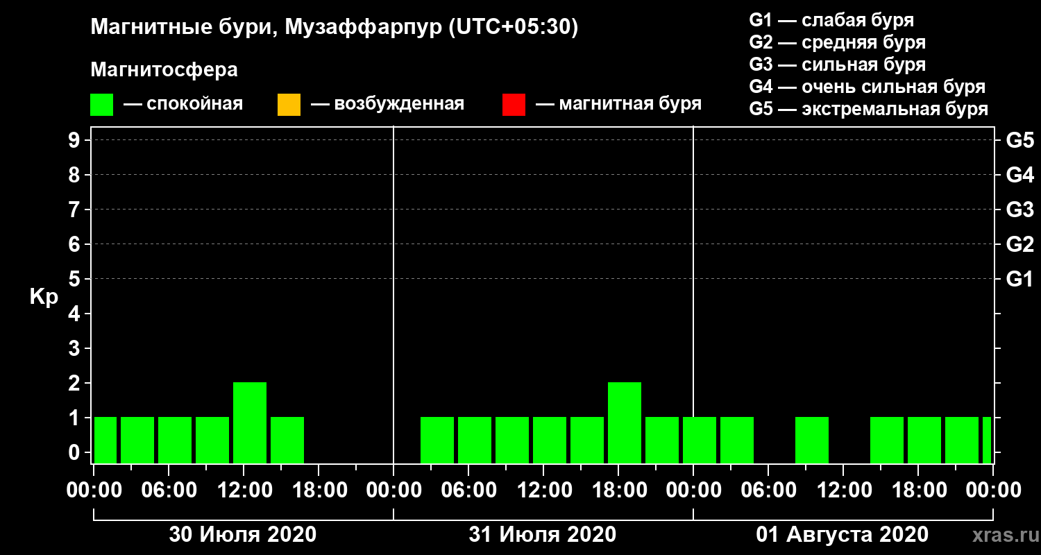 Магнитные бури в Музаффарпуре — 1 августа 2020 года