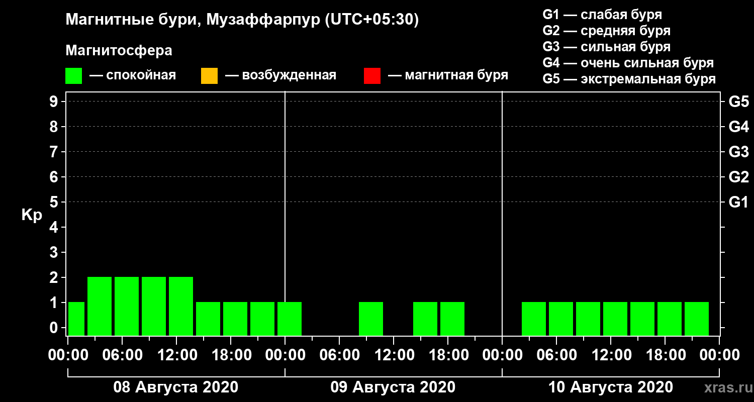 Магнитные бури в Музаффарпуре — 10 августа 2020 года