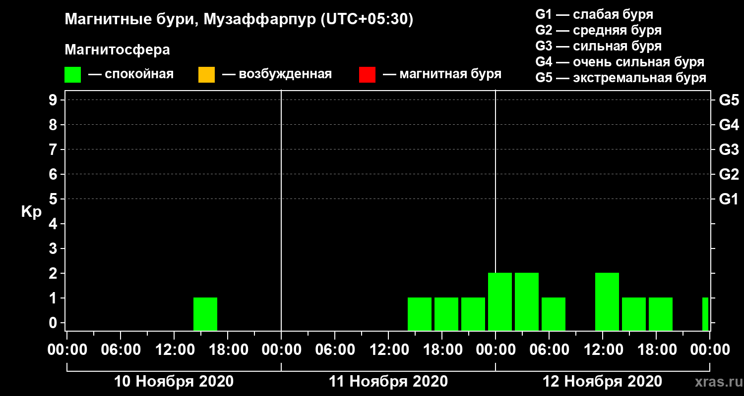 Магнитные бури в Музаффарпуре — 12 ноября 2020 года