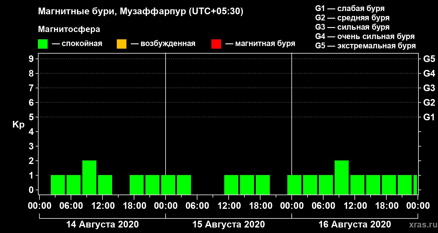 Магнитные бури в Музаффарпуре — 16 августа 2020 года