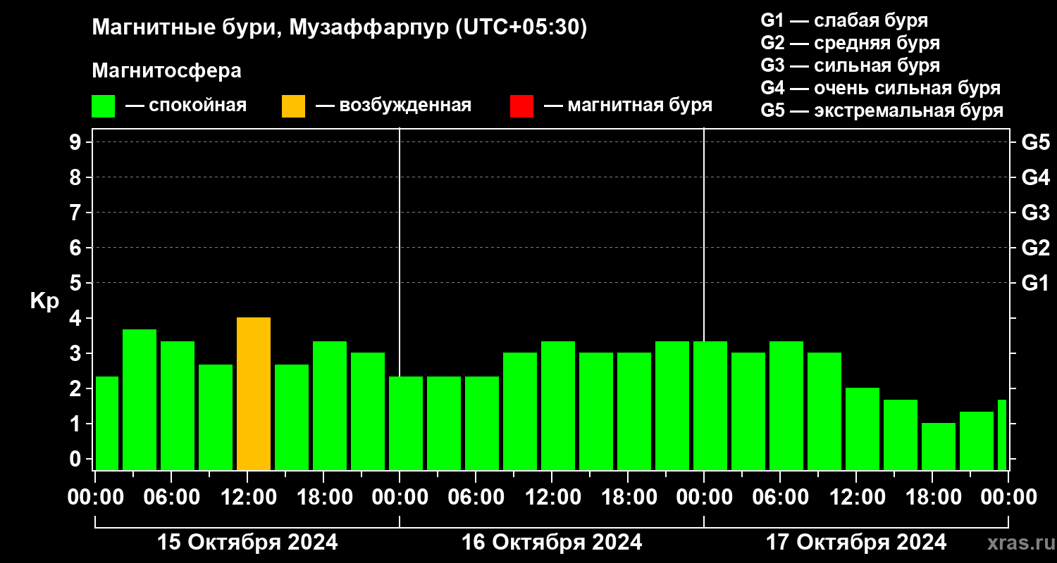 Магнитные бури в Музаффарпуре — 17 октября 2024 года