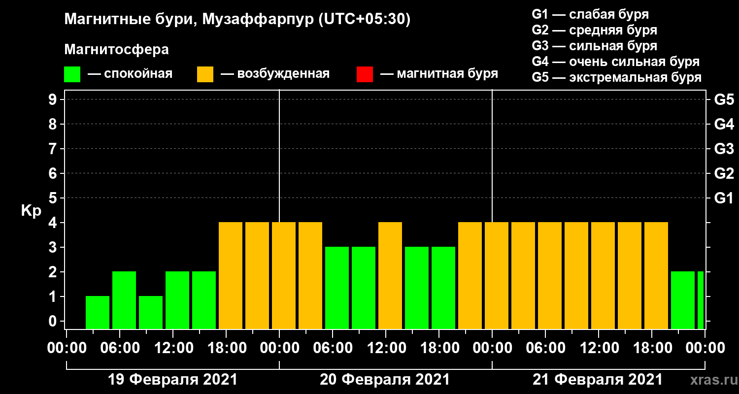 Магнитные бури в Музаффарпуре — 21 февраля 2021 года