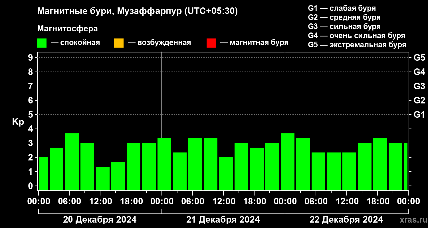 Магнитные бури в Музаффарпуре — 22 декабря 2024 года