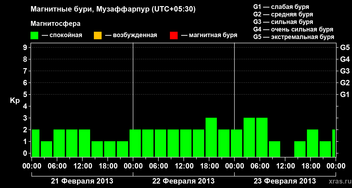 Магнитные бури в Музаффарпуре — 23 февраля 2013 года