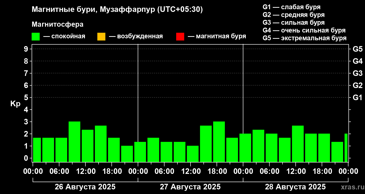Магнитные бури в Музаффарпуре — 28 августа 2025 года