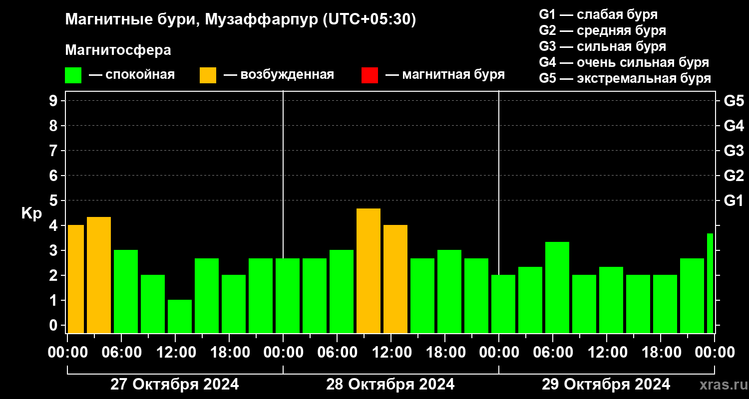 Магнитные бури в Музаффарпуре — 29 октября 2024 года
