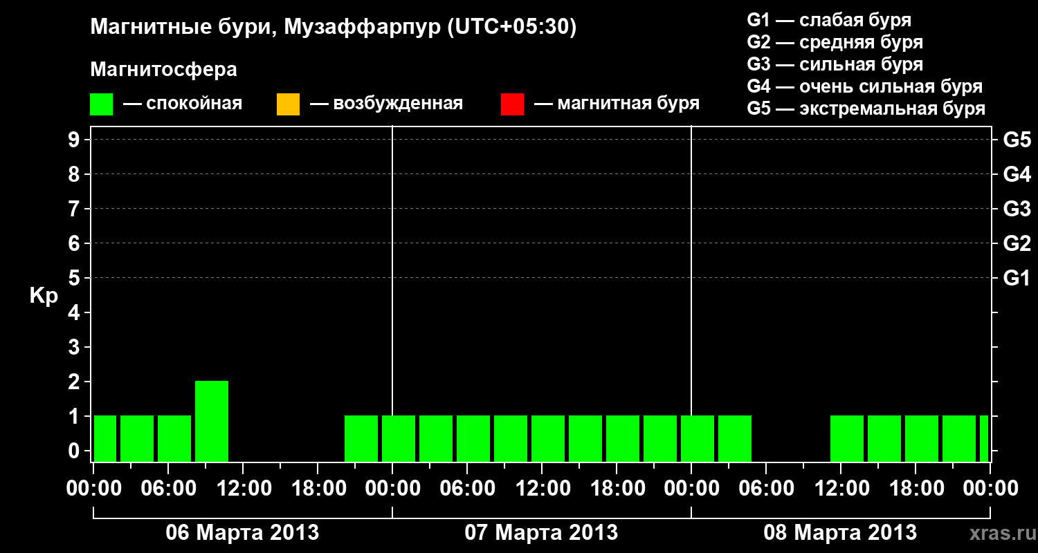 Магнитные бури в Музаффарпуре — 8 марта 2013 года