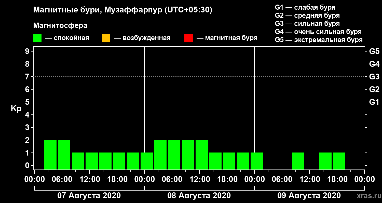 Магнитные бури в Музаффарпуре — 9 августа 2020 года