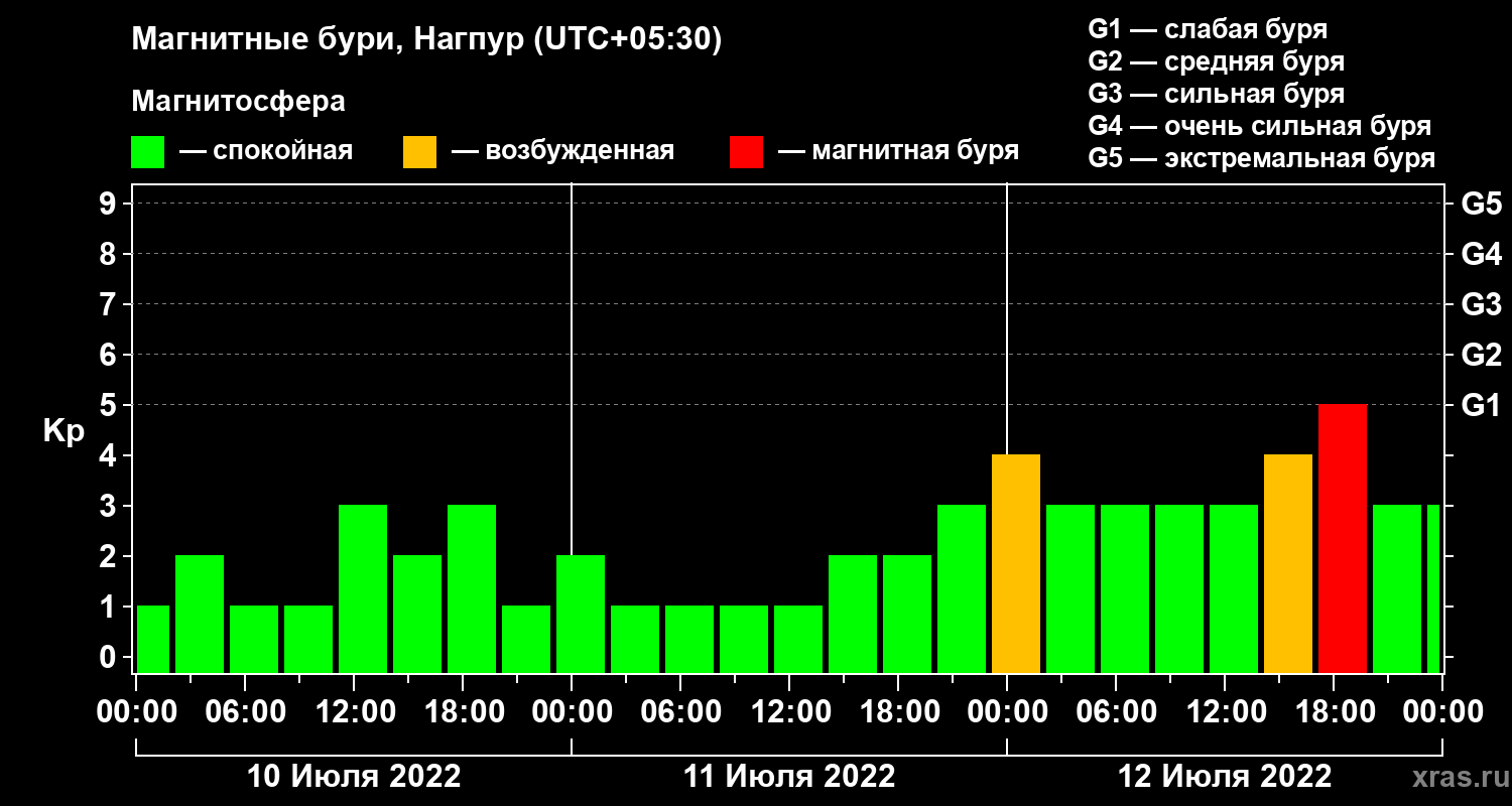 Магнитные бури в Нагпуре 12 июля 2022 года