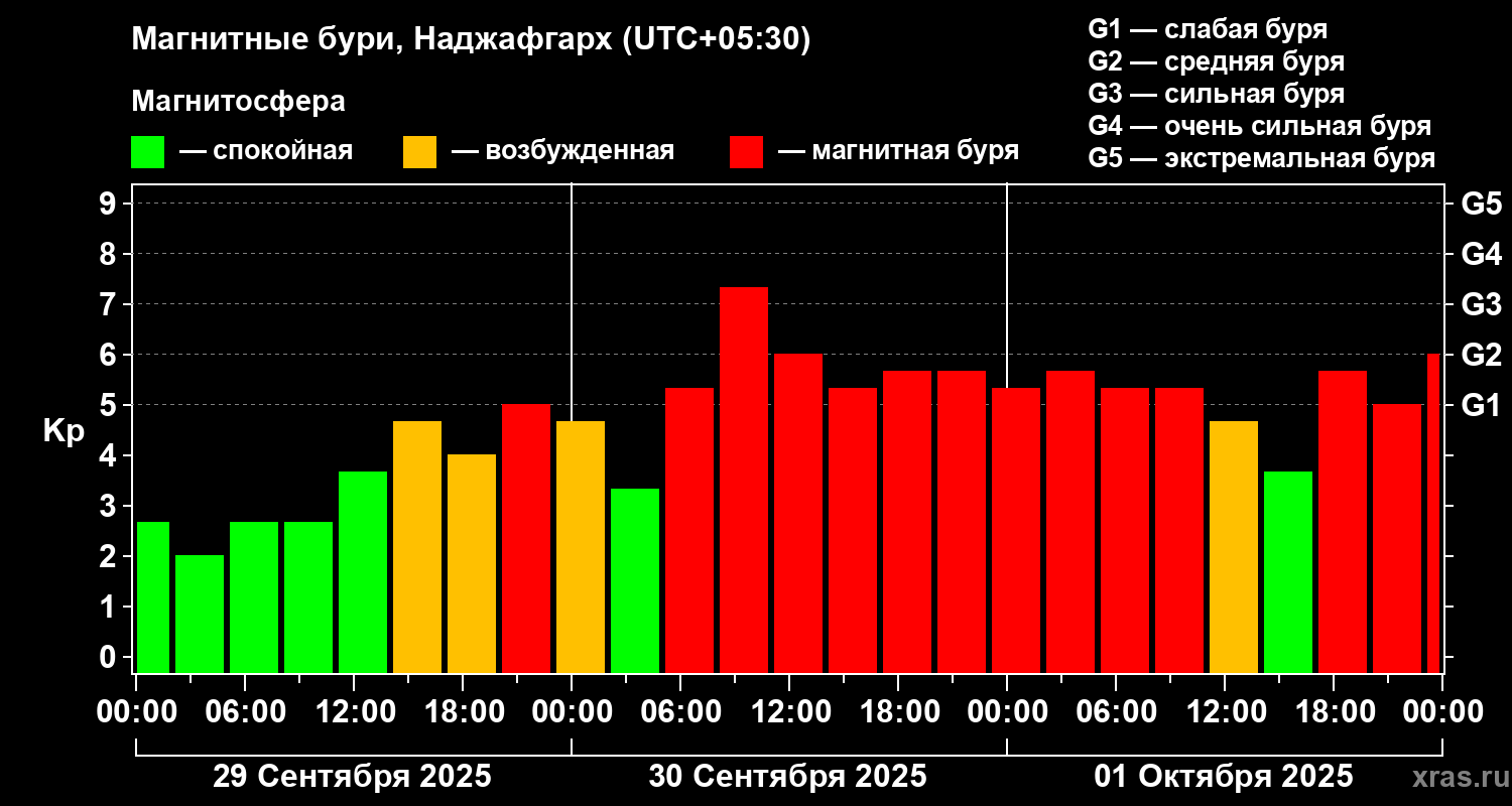 Магнитные бури в Наджафгархе 1 октября 2025 года