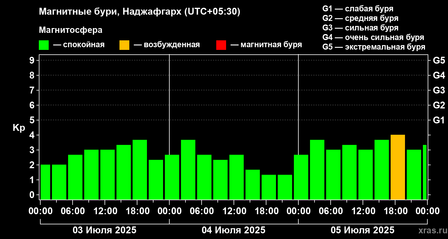 Магнитные бури в Наджафгархе 5 июля 2025 года