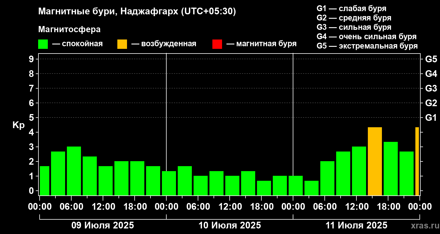 Магнитные бури в Наджафгархе — 11 июля 2025 года