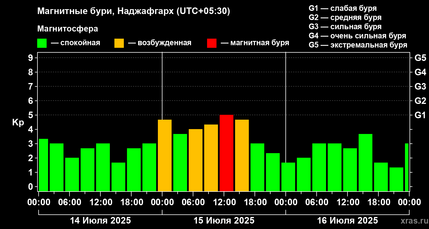 Магнитные бури в Наджафгархе — 16 июля 2025 года