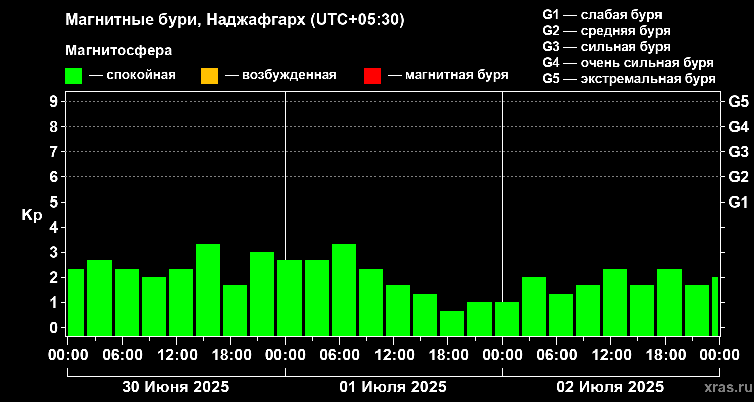 Магнитные бури в Наджафгархе — 2 июля 2025 года