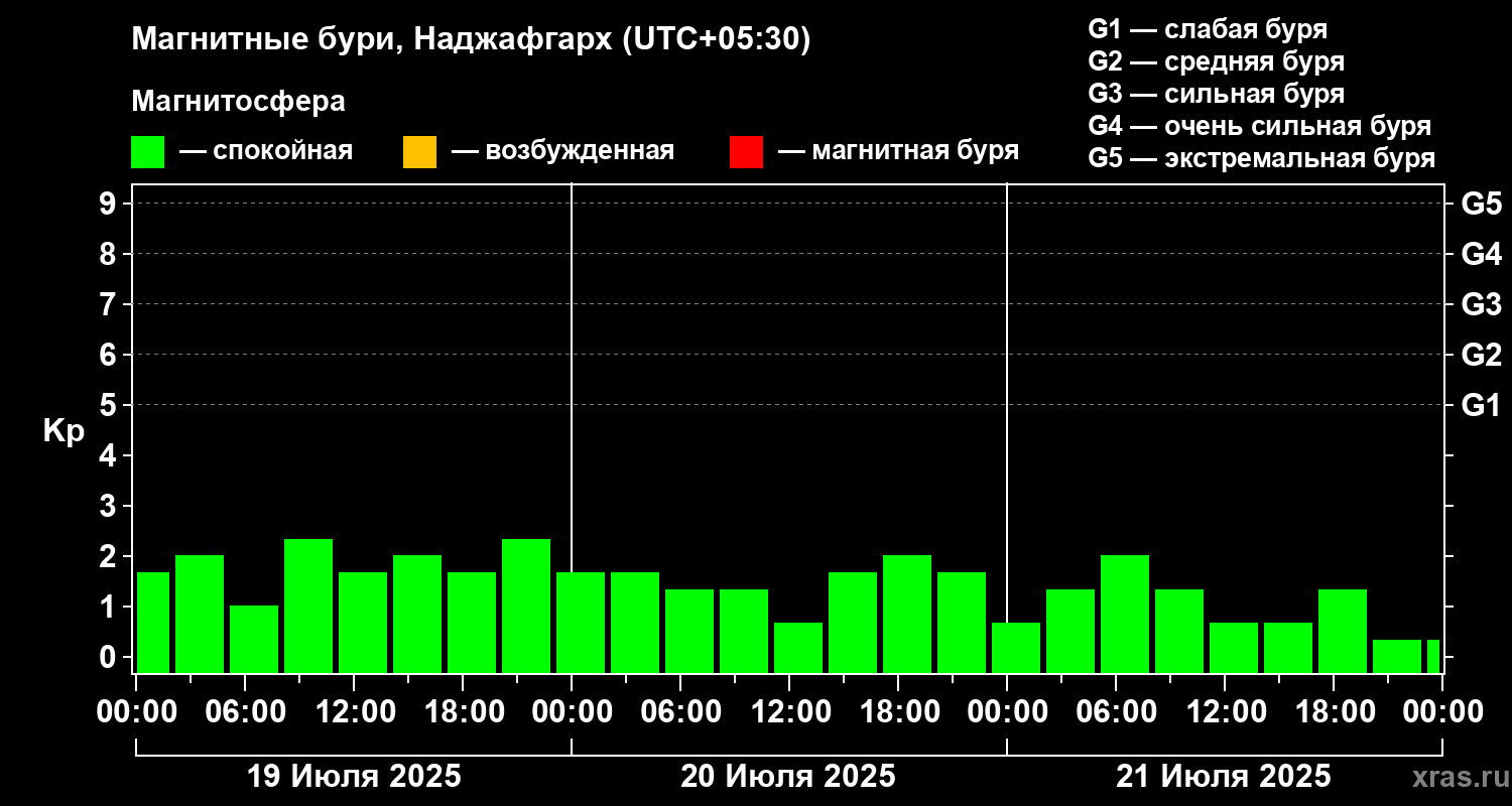 Магнитные бури в Наджафгархе 21 июля 2025 года