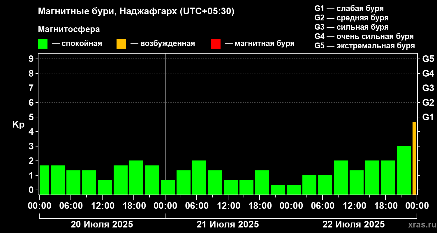 Магнитные бури в Наджафгархе — 22 июля 2025 года