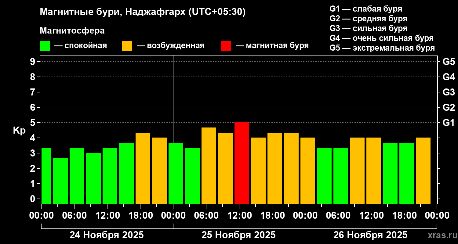 Магнитные бури в Наджафгархе 26 ноября 2025 года