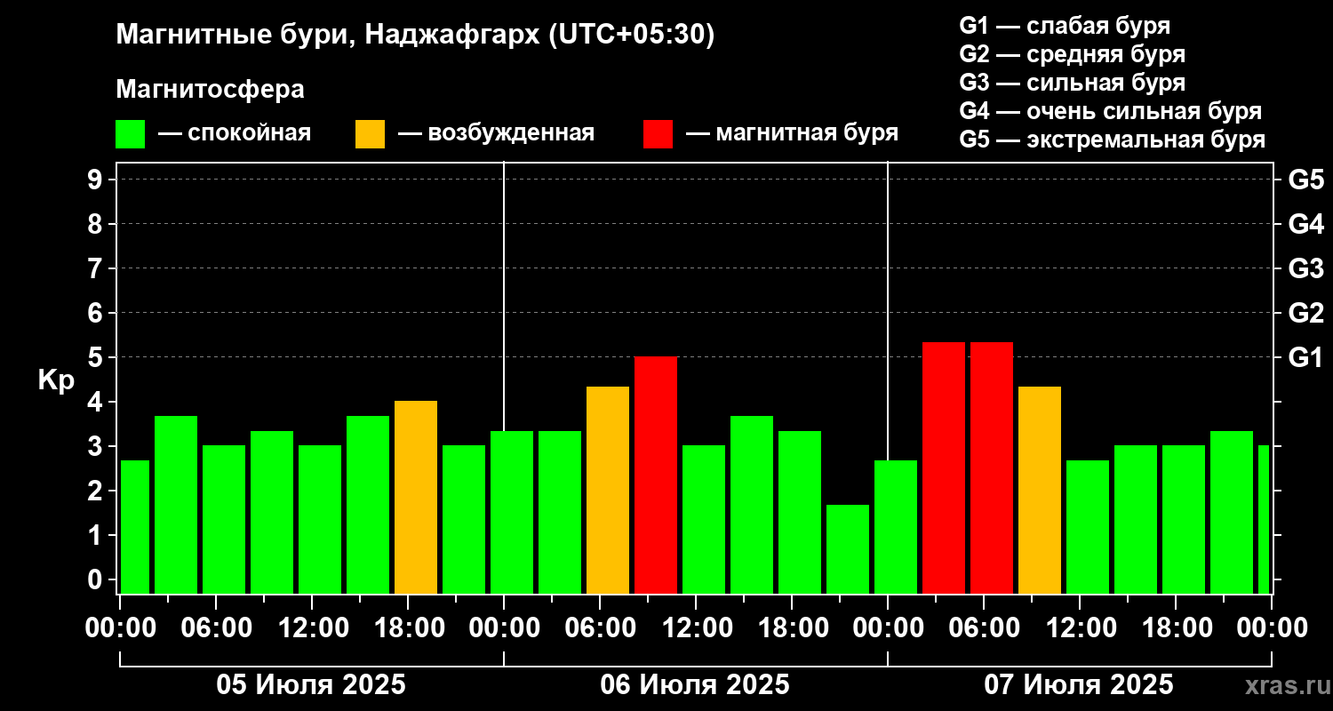 Магнитные бури в Наджафгархе 7 июля 2025 года