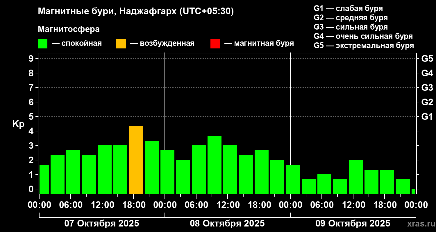 Магнитные бури в Наджафгархе — 9 октября 2025 года