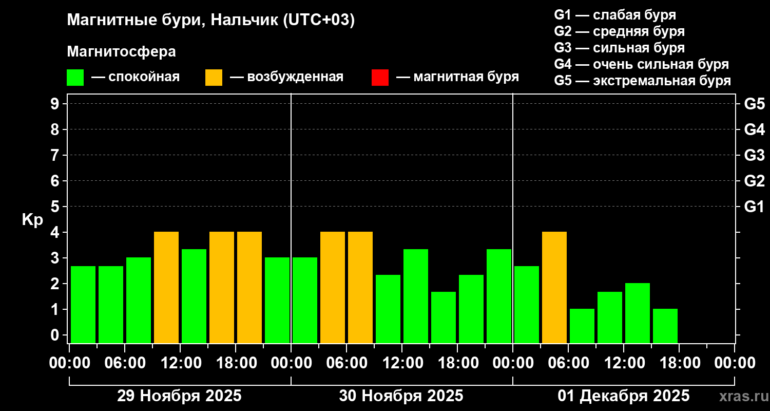 Магнитные бури в Нальчике — 1 декабря 2025 года