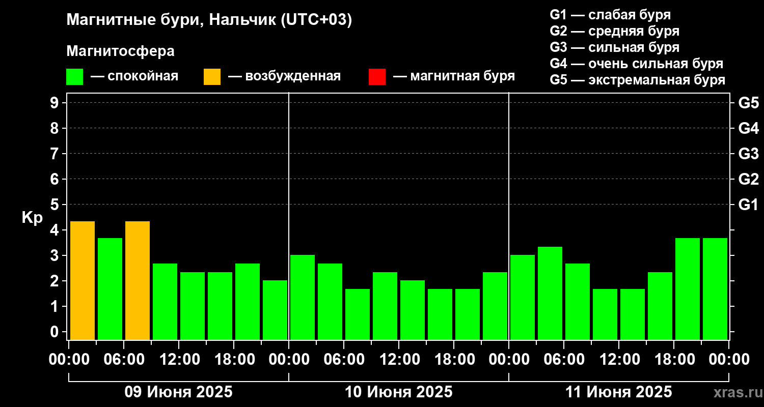 Магнитные бури в Нальчике — 11 июня 2025 года