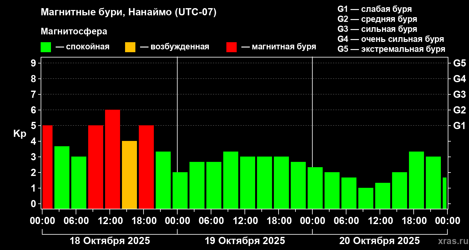 Магнитные бури Нанаймо 20 октября 2025 года