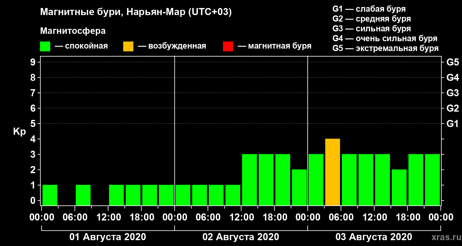 Магнитные бури в Нарьян-Маре 3 августа 2020 года
