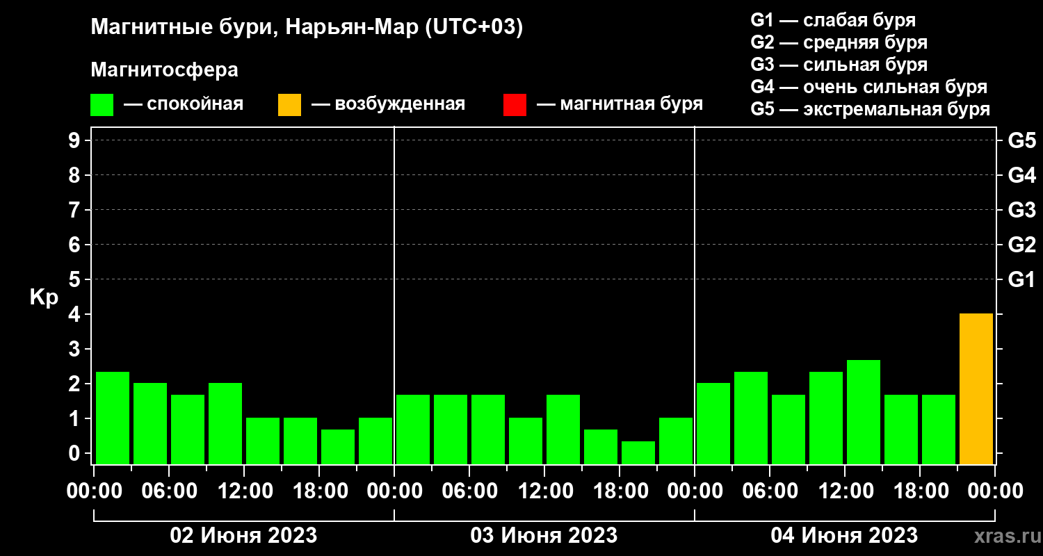 Магнитные бури в Нарьян-Маре 4 июня 2023 года