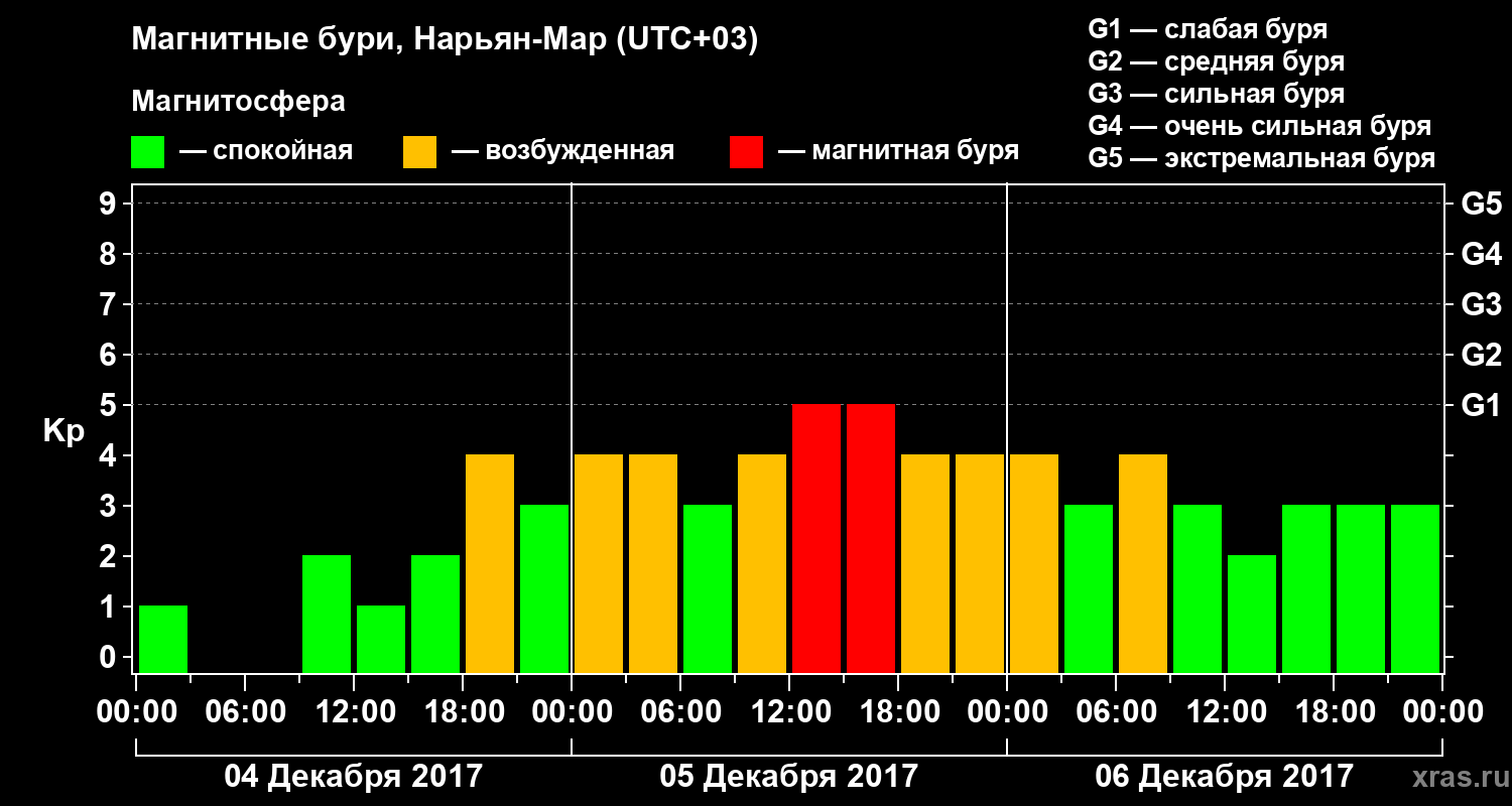 Магнитные бури в Нарьян-Маре 6 декабря 2017 года