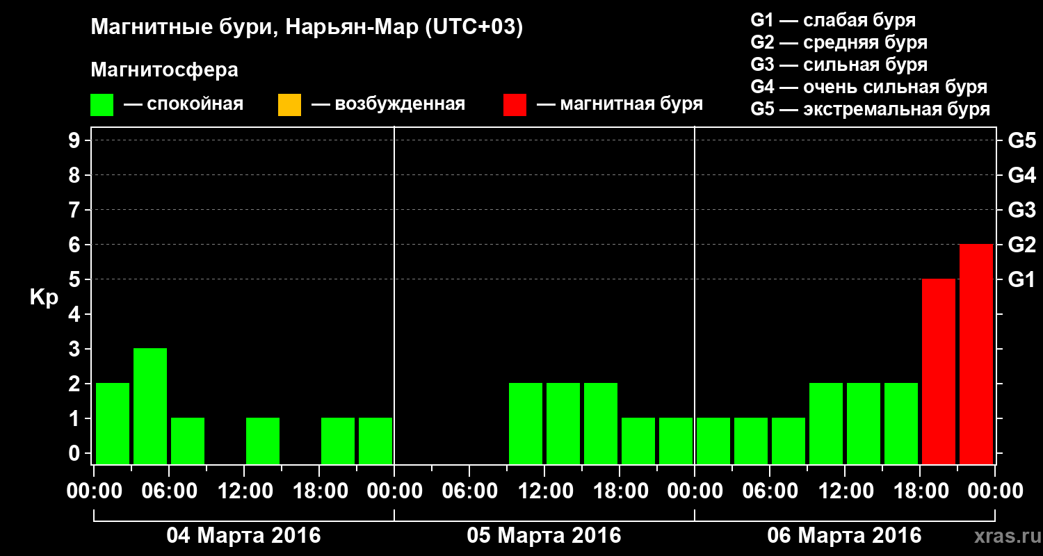 Магнитные бури в Нарьян-Маре — 6 марта 2016 года