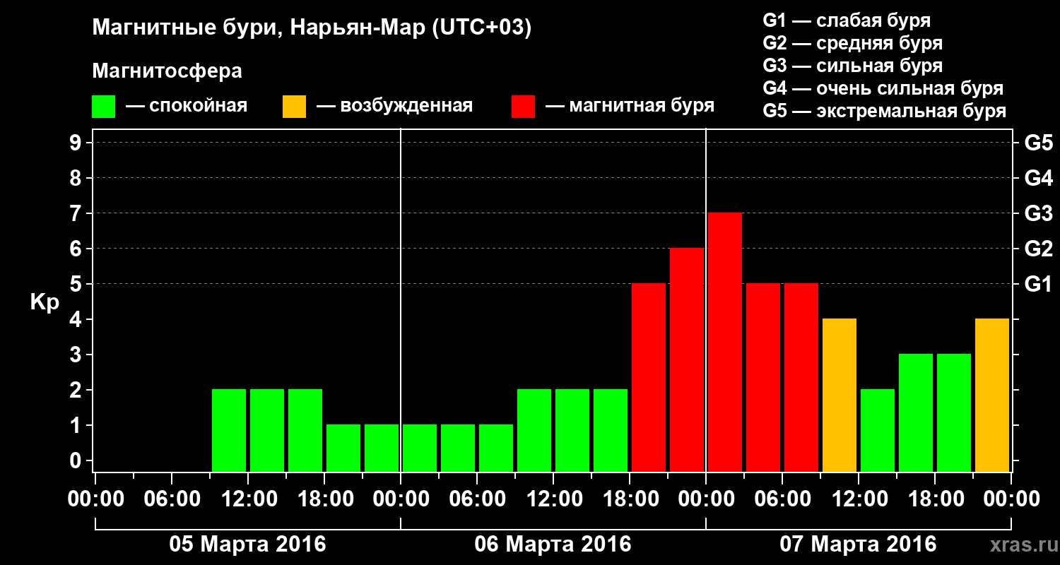 Магнитные бури в Нарьян-Маре — 7 марта 2016 года