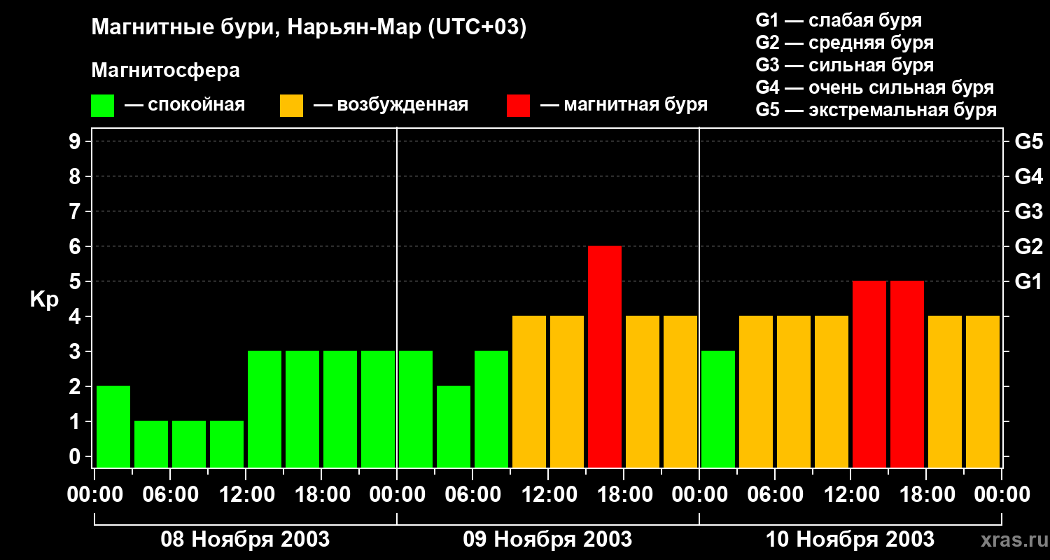 Магнитные бури в Нарьян-Маре — 10 ноября 2003 года