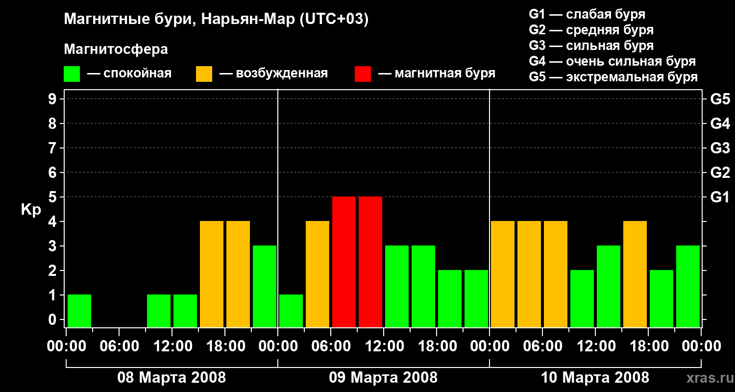 Магнитные бури в Нарьян-Маре — 10 марта 2008 года